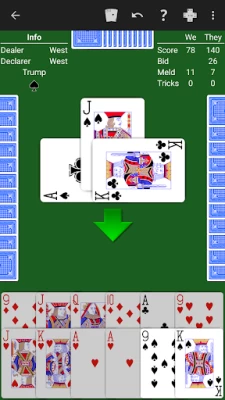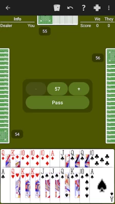 Great experience, I've learned how to play using this app. It is also fully customizable for more experienced players to enjoy. The only thing I don't like is obviously the AI will never make a mistake bidding or playing tricks. I find myself asking the help button for advice on bidding in order to be competitive against the AI. Although the bidding advice is helpful with teaching me how to bid the meld it feels like cheating... Anyways I feel confident enough to play IRL now.