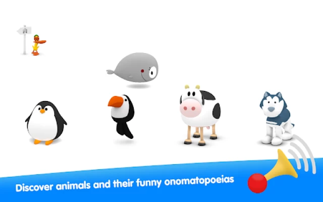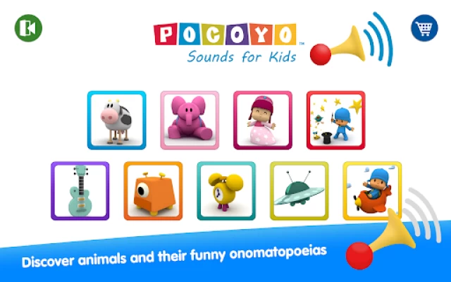 Discover a wide variety of different baby sounds to complement their learning and make it more fun; sounds of animals, onomatopoeias of musical instruments, sounds of means of transport, noises, and much more with Pocoyo Sounds for Kids. Make your babies laugh out loud listening to cow sounds, chicken onomatopoeias, farm animal sounds, Martian sounds, electric guitar melodies, trumpets and much more.