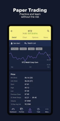 I was going to be more critical until I noticed it was still in beta. That being said, while I do occasionally use the desktop E-Trade applications, I end up charting with a different online software and placing orders here. It's definitely a cleaner interface than the last app but needs a lot of work. I would like to see account balance chart over time, options price chart, statistics for my account, better price and volume data, etc. I refer to other "gamefied" apps often for more info.