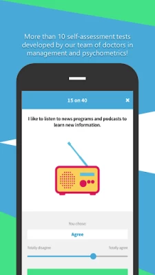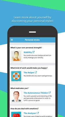 There's not really much to it, just a bunch if quizzes and once you're done with them all, there's nothing else insightful. I would've loved it if there was a feature that could bring more information on these personality types and even have list of other personality types like 16personalities, I also saw that it could suggest ways to develop the areas that we lack in, However I couldn't find it when I installed the app but the results and questions are different than any other personality app.