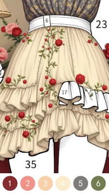 Fun and relaxing coloring app. I love how the pretty dresses transform into beautiful pieces of art. Flowers or branches appear in some of the parts you are coloring. It also gives you the chance to pay weekly, monthly, or for a full year to have the watermark removed. You can also pay for hints at a very reasonable price. Have fun, everyone 💗