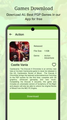 Features: • Download a variety of PSP games, including strategy, action, and shooter titles. • Optimized and highly compressed files for a smooth download and gameplay experience. • Compatible with emulators such as PPSSPP for seamless play on Android devices. Relive nostalgic memories or explore exciting modern titles, all from the convenience of your phone. Download now and dive into the world of PSP gaming! Disclaimer: This app is an independent application for downloading PSP game files. It is not affiliated with, endorsed by, or connected to the PPSSPP - PSP Emulator app or its developers in any way.