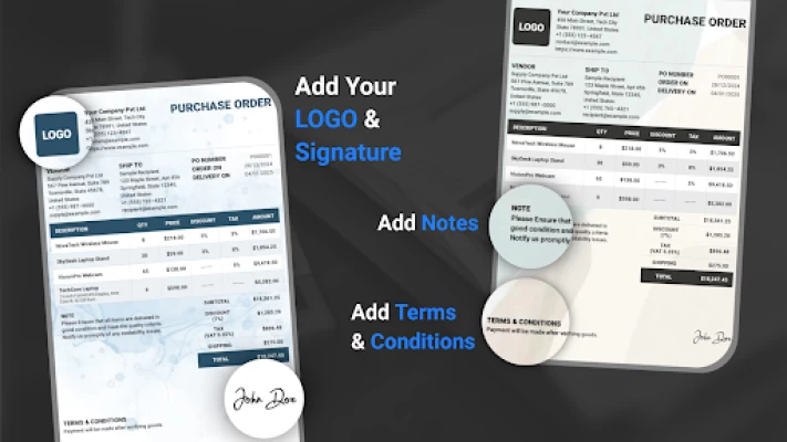 With Purchase Order Maker - Quick & Simple, you can easily create, manage, send and track purchase orders on the go. Keep everything organized, ensuring your procurement process runs smoothly and efficiently with this user-friendly purchase order app.
