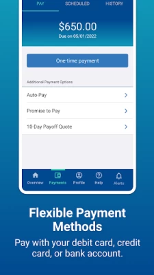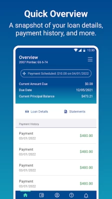 App makes things very convenient. My only criticism would be lack of auto pay options. I would like to make payments every 2 weeks opposed to every month. The app also does not keep your bank/credit card info for payments, which I suppose is a good and bad thing.