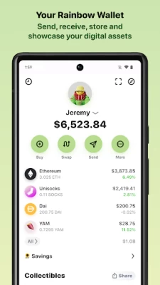 The app's UX and UI is great for a general wallet however it's lacking the ability to browse Web3 and interact with websites. I'd also like to see the ability to connect my Ledger to Rainbow instead of importing a seed phrase.