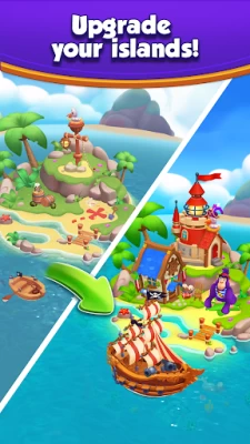 You will be welcomed by the main treasure hunter – a former sea wolf who loves traveling. He will tell you a story about how all the countries, towns and even fantasy places turned into separate islands, surrounded by the ocean. Renovate islands, get coins and play strategic PvP match 3 for free and offline.