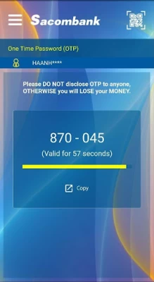 Can't not get the OTP, every time i sign in, it was become the Sacom ebanking, and don't show me the OTP code. App is so bad