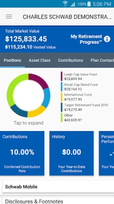 The phone app is okay, but it doesn't show basic info available on the Schwab Workplace internet site, such as how many shares of a particular fund you own. The app only shows total dollar amounts. I would not have installed it had I known that.