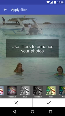I downloaded it for a black and white photo to transition to a colored photo for a gender reveal and I was very happy with it. Just not pleased that I couldn't figure out how to resize text over picture and couldn't control time text spent on screen. Easiest app I've found yet to get what I want! Very, very pleased!