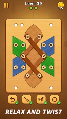 THIS GAME HAS A TIMER. This was great for the first few levels, and then timer showed up.i think that the wood screw games look so fascinating. The way they move, the interaction of different parts, even the coloring, but I can't handle the games with timers.i have physical problems and can't move well or quickly so, I have to uninstall this game. Just make an off switch for the timer and let people like me play. Handicapped people spend money too.
