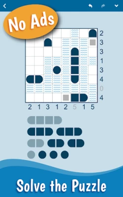 Lovely! The interface is great, graphics are clear and controls are nice. The ability to fill a column/row with water just by tapping on the number is simple but v helpful. Haven't been interrupted by an ad yet. After I moved onto medium puzzles I got stuck and can't see how to solve the puzzles other than by trial and error, so I was going to dock the review by one star. Then I saw the developer has said that all puzzles can be solved by logic and has offered to help if you're stuck! Excellent!