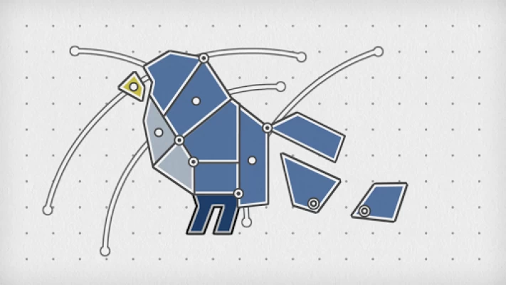 Good, but puzzles are very simple, and, weirdly, doesn't follow any progression in difficulty at all. As you go along, you unlock new ways that pieces work. At first, all pieces are hinged to a fixed starting-piece, or hinged to other hinged pieces. Then pieces sliding on tracks are introduced. Then pieces can be hinged to these sliding pieces, etc, etc. But almost all of the puzzles are easy, and they don't really get harder as you go.