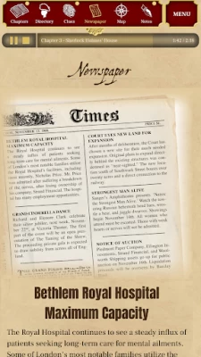 This game app is ridiculously beyond belief! The plots and twists are life-like and representative of the original stories of Sherlock Holmes. The theme colors and graphics design are in a class of its own: they romantically bring the late 19th century atmosphere and ambience. And the option of verbal narration tops it all off, making this game a glorious experience for "wannabe" detectives. I blazed through all the four cases in less than a week. So I'm now a lonely detective without a case 🤓