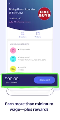 This is another app that's complete garbage. I have a snacking job account and it won't let me create an account through Shifts and it definitely won't let me sign in using my snagajob account either. So I'm just going to uninstall the app cuz it's a complete waste of space. Not legitimate at all. I'd give a 0 star.