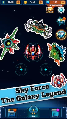 Embark on an extraordinary cosmic odyssey in "Sky Force - The Galaxy Legend," a thrilling spaceship game that catapults players into the heart of intergalactic warfare. Command a formidable fleet of spaceships, each equipped with cutting-edge weaponry, as you navigate through breathtaking celestial landscapes, engage in intense dogfights, and confront formidable adversaries.