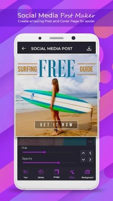 So many more options than I originally thought. Change sizes based on which social media outlet you are using. Choose your background, text, font, position, colors, effects. Only suggest is to add an option to change text size with a scale (numbers) not just with arrows and sight. All in all very impressed!