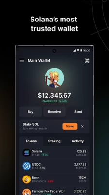 Still my first choice for Solana wallets. Can be kind of sluggish compared to others at times, and I sometimes have to scan my thumb print a few times before it actually unlocks, but it has always remained otherwise stable when other wallets were crashing from too much traffic