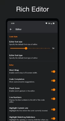 This is a great app for code editing. It is very customisable. However, I encountered one annoying problem where, for some reason, when I stopped typing for a couple seconds, it would move where I was looking to the start of the last line. Other than this, the app is flawless.