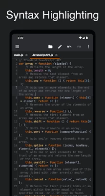 Nice enough look. REALLY WISH there was code folding, like in Notepad++. Panning around can be a little cumbersome. The app's file browser on the left-hand side, under the 3 bars: cannot navigate to or see my SD card; only my 'Local Storage.' I have to use a different file browser to select my file and then select 'Open with' and choose to open it with Squircle.