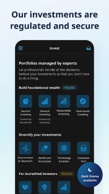 A very neat app that invests my money instead of letting it go idle in my bank account and potentially loses its value to inflation over time. There are many varieties of investment instrument that I can choose from; from low risk money market funds to REITs, clean energy and precious metals. Although I just invest in 'General Investment'. The layout of the app although confusing at first, you will get used to it and there are many features that can help me track my investment portfolio.