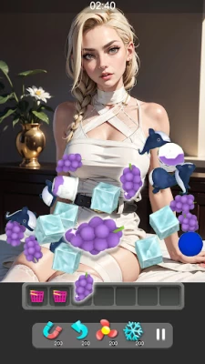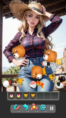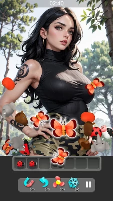 Pretty good AI art, hands often hidden but not faulty when shown. Ad after every puzzle, so you might as well double your earnings by choosing to watch instead of trying to click past it. Ads usually require 3 clicks to get thru. I got to about level 60-65 before failing any trials, and now at ~75 they are often tricky. But 75 of these sorts of puzzles isn't bad fanservice. Plenty of nipples & cameltoe to be found, all under clothing/bodypaint.