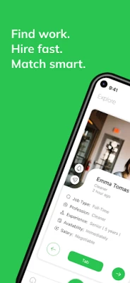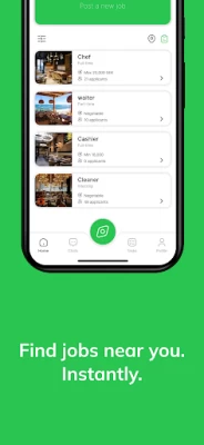 finding jobs in restaurants, cafes, cleaning companies, and more. You swipe left