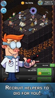 The game is ok, as you would expect from an idle game, but later on it gets annoying for the fact that of you have a lot of damage you have nothing to do, might as well close the game. 10 levels per area, 25 areas and give or take 20 regions for 5 planets. Quick math 25 000 / 2 (2 levels per second) = 208 minutes (3.4 hours) if you want to pass the game. Just looking at the screen. Who does that ? Maybe make something like a faster drilling for the completed planets.