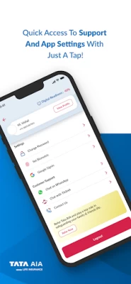 This app missing most important thing - Option to talk with customer care team. To solve your problems directly. They only provide useless tollfree number or helpline no. You can not talk with any customer care executive on your own wish. All TATA AIA apps including TATA Vitality not provide this facility. You have to wait for week for their call. TASHA chat bot is also worse. TATA AIA should improve there customer care service.