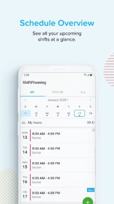 This app is very useful , however, I do not receive notification alerts before a shift , so you know like an hour before or even 30 minutes before. It looks like I have alerts set up via the app , but I don't seem to get them. It MAY be something in my settings , I'll have to check. However, if it's not , I would like to see an improvement in the reminder notifications. Thank you !
