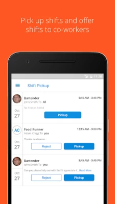 This app is bad. It can't save your login data, it signs you out randomly, the few times I tried to use the messaging function it sent to the wrong person months later. Somehow it is possible for management to change your schedule and you not get any notifications; text, email, or push notifications.