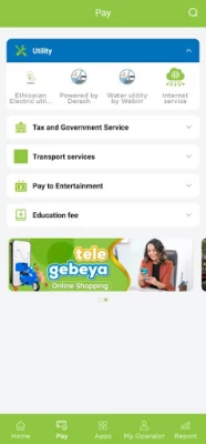 Please you may add payer phone adding row just as electric bill for Ethio bill. And also adding additional features for immigration service(passport payment) and ministry of trade and industry.
