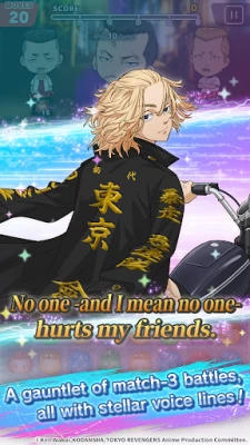 I love this game ! This is not just one of these boring puzzle games, it's a TOKYO REVENGERS puzzle game! And as a HUUUGE fan of the manga/anime I think it's so nice to have a story when levelling up and during special events. BIG problem tho: I lost all my data (w/ paid items) bc my previous phone broke, there was no way to get my data back. I tried to find the so-called "backup option" GOODROID told me about in my emails and I never found it. Just allow us to create an account to avoid that