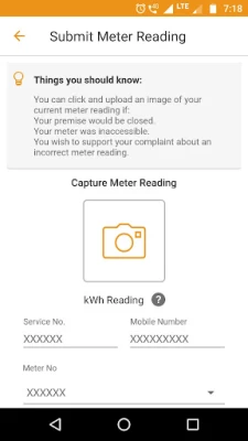 Everytime i submit my reading manually - it is not taking and not giving any success or error. Then i had to mail. So no use of submit meter reading from mobile app as when i call customer care and inform that meter reading submitted , they tell me that no meter reading they have received so useless option of submit meter reading in mobile app