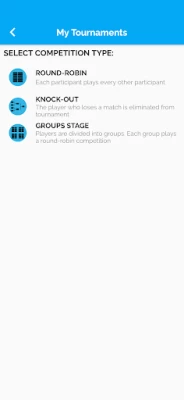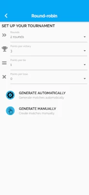Thanx for the great app but there are some bugs which needs to be fixed as there is no completion of tourament. After the league matches, it should automatically create the matches of the semi finalist as per the top 04 standings. What is the use of "Add existing tourament" while nothing changed after doing this.