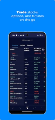 This is the slick mobile application from tradestation. I guess the intention is to use this to trade securities. However it could definitely be so much better in that regard. It is slick, as I said. It looks great but when you actually start using it, you realize how limited it really is. It has a chart feature but it auto-zooms. If your order is off-screen, you just get a note on the chart. You can't scroll up or down (which is more frustrating than it sounds). Worse, if your order fills and closes out, it does not appear on the chart at all. The only clue you have is to hunt through your order history or look at the balances screen which gives an overall total. This is much more painful than it sounds, especially if you just want a quick update to know how much you just made or lost (like if you have a trail set on your security). The app definitely lacks simple basic usability features. As a trader, I want to know my percentage gain or loss, not the gain for the security since market open. I want my profit data, where I entered and an idea of how close I am to my exit target. For this, the app gets only 1 star. The app definitely looks slick and polished, but it's very buggy and cumbersome to use. It was definitely not designed by a Trader. Overall, 2 to 3 stars.
