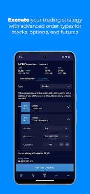 Glitchy at the worst times. I was in a trade and my stop loss disappeared. Very critical for risk management! The only way I got it back was to exit the app and open it again. It would be nice to have the bracket order as a default since I never trade without an exit and target price. When you change from a buy to sell order it changes your manually entered price to the current one so I end up accidentally entering at a horrible price. I hope there will be improvements in the next update.