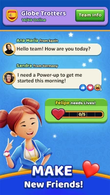Please forget social teams and go back to asking and sending for coins, lives, power ups like before. This completely changes game play for the worse because now lives and coins deplete too quickly and there are no real team options available unless you want a team of just a couple players and most members have 0 helps. The way it was is the reason I started playing this and not Royal match as much. This drastic change may lead me to delete if I can't play like I use to.