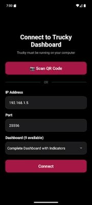 Requirements: • Trucky Dashboard desktop application running • Same WiFi network for mobile and desktop