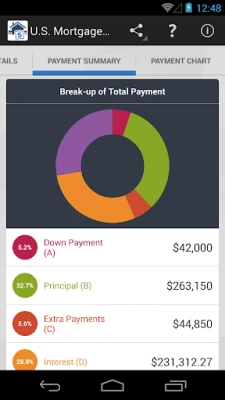 A great app to analyze and see what your loan can look like using different scenarios; extra monthly payments and or lump sum annual payments. If only I could save a few different calculations, that would be wonderful. Thank you!