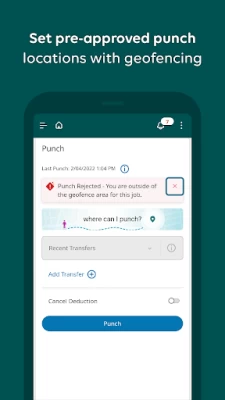 Works well to record punches and see and request modification of schedules. The adjustments options via the GUI needs better labeling. Dots, circles, squares, all used on the same card, it's confusing. Some options are not accessible so why even show them. Recently, as of late May 2024, there is a big 👁️ icon overlaying the log in screen. It's creeping me out.