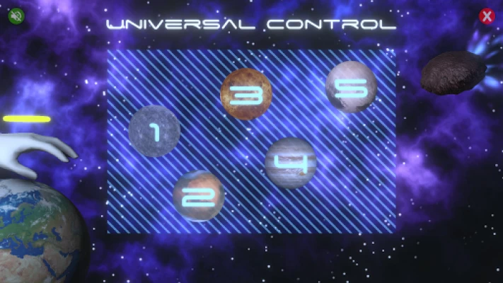 Universal Control is a 2.5D puzzle mobile video game where players take control of a gigantic holy hand to protect the planet Earth from an enormous meteorite rapidly approaching. At this point, players need to successfully throw the meteorite into a black hole to successfully complete the puzzle and progress to the next one. However, the meteorite will find on its way different sort of obstacles such as planets or stars with their own gravity fields which players need to take into account beforehand when aiming for the black hole.
