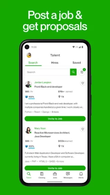 Love 2 of the 3 freelancers I hired (1 was decent.)... however my main one can't sign in or get my messages properly etc. Now and it's a regular occurance. We can't use the phone chat and have to use another app entirely for phone calls. They charge a fee for me to pay them and when I mentioned this to one of the feelancers I heard they also take a very large cut of their pay too and still say the freelancers are paid in full. Putting up jobs, profiles, and finding people is easy. But trash.
