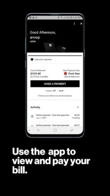 No security log in. When you open the app your information shows right away, no fingerprint, no security code. Also reports wrong balance. My very first balance I paid in full, and now I have a $76 credit. This isn't how credit card apps should work, I use 3 others that offer secure log in and log out. I like the perks of the card, but this app does not make me feel like my information is being protected properly. Also, I don't recall seeing the points were ONLY for Verizon bucks..that sucks.