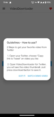 The app is good for downloading Twitter videos. The ads after downloading the video are a bit longer sometimes more than 30 seconds long and is difficult to skip.