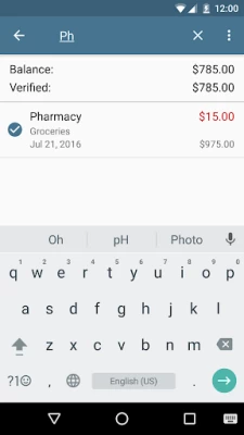 Perfect and simple. Press "+", enter info and amounts, press save. That's it. The app does the rest. Maintains an updated total and displays transactions newest to oldest. You can re-edit each entry including the date. I have 3 accounts I track: a personal checking, business checking, and credit card account. This app is very useful in helping me know how much actual money I have available to spend or how much credit available.