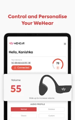 Take full control of your WeHear device with our simple and easy-to-use control center. Adjust your settings, manage your language preferences, and fine-tune audio options to make your experience unique to you. Whether you need to change the language or update your device’s settings, everything is in one place for your convenience.