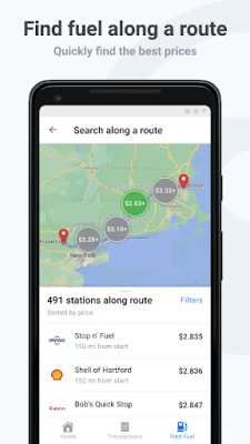 Updated app is not as user friendly as previous. Now takes 9 keystrokes, 3 screens to get in. Used to be one screen and just a pin. Fuel search no longer allows you to finger zoom to an area and search. Transaction list has less detail, now you have to click on it and open a different screen to see transaction, no longer a quick glance... Old app was smarter technology, not sure why you would update and offer less to users.