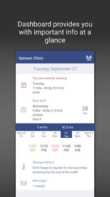 Hello! I've been having this app for about 4 months now for work. At first the app works pretty well, and tells me when to come in. Yet, the app would crash. And also, for some reason my times would be inaccurate on the schedule. I keep having incidents the schedule will tell me I'm working from 11-8 or even 10-8. Later to be called why I'm not at work. I restarted my phone several times to see what is happening. I reinstalled the app.. and it finally updated to 9-6.... please fix this.