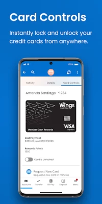 As an alternative to the Wings website, the Wings Mobile app offers similar functionality, although it uses a very different layout. It works great once you get used to the app and find out where everything is. The mobile deposit has received updates over the past few years and is consistently reliable. Managing travel on Visa cards works great too.