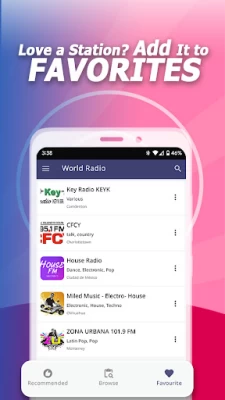 Add your favourite radio stations to the favourites list β€ for easy access.